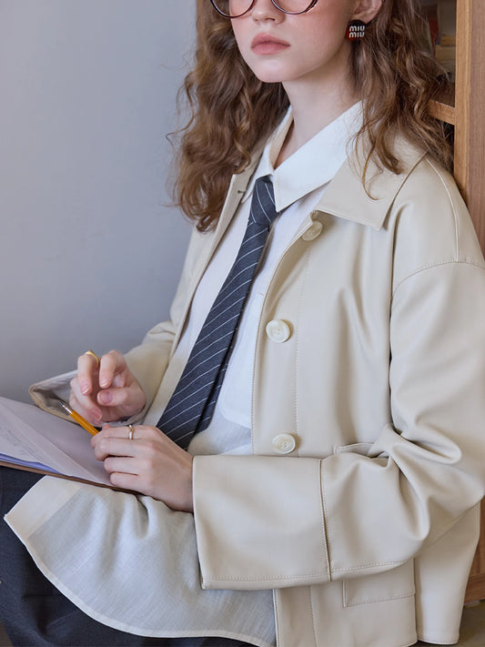 FARRUCCI Women’s Retro Single-Breasted PU Leather Jacket Short Spring 2025 | Luxury Versatile Casual