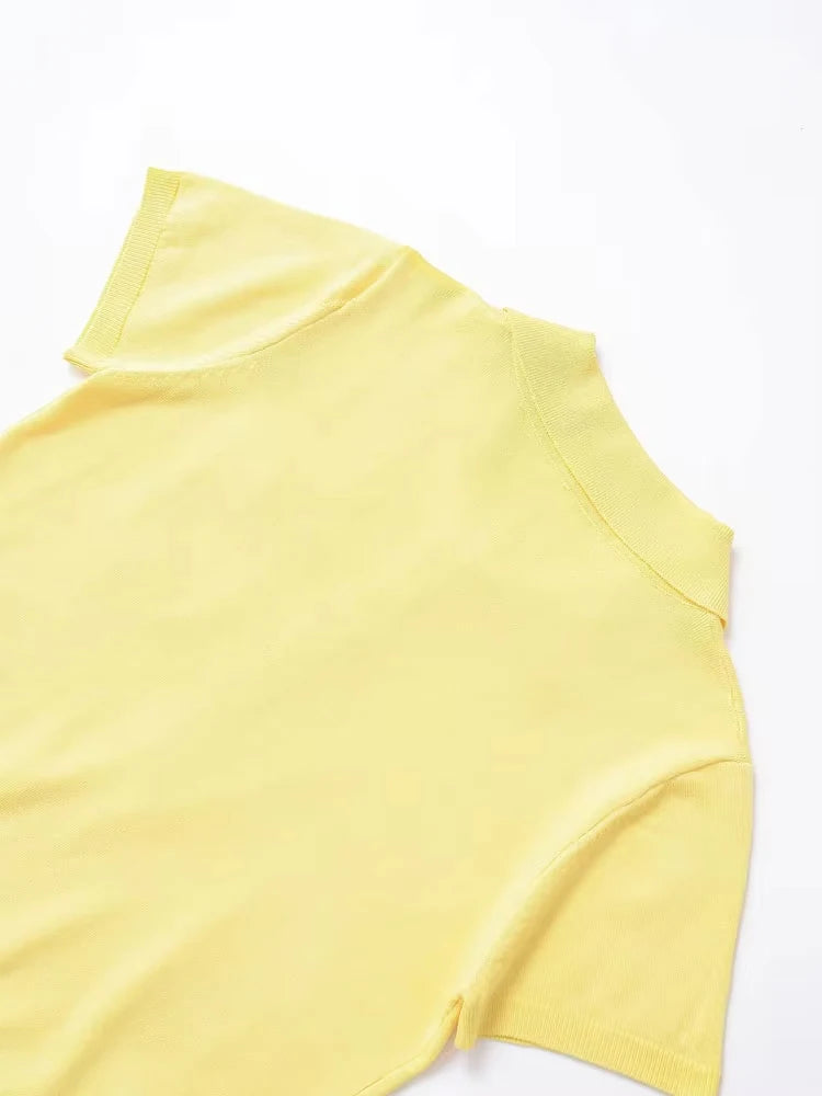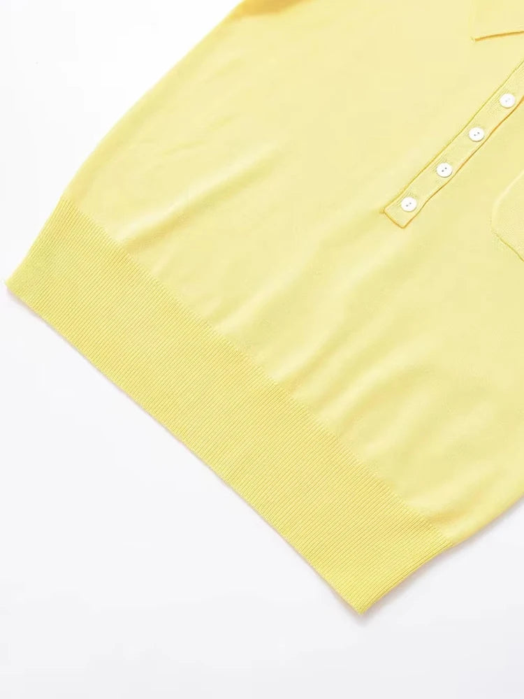TRZA Women's Fashion Front Button Knit Sweater Polo Collar Short Sleeve Female Pullover Chic Top
